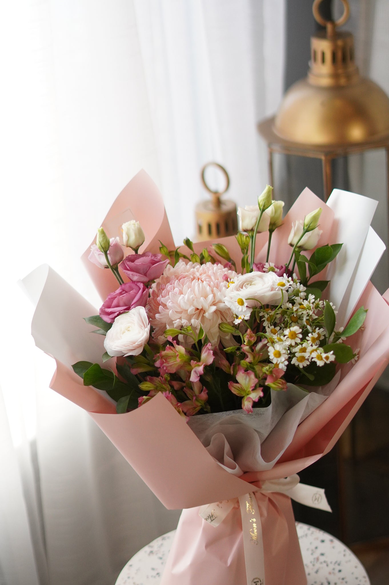 Embrace the enchantment of summer with the Summer Fairy bouquet featuring delicate chamomile, vibrant chrysanthemums, and an artful blend of seasonal blooms. Each stem is carefully selected to capture the warmth and vitality of the season, creating an arrangement that brings joy to any celebration, whether marking a milestone, expressing gratitude, or simply brightening someone's day. The soft, natural palette and textured layers make this bouquet a versatile choice that complements any décor while delivering the freshness of a summer garden directly to your door.