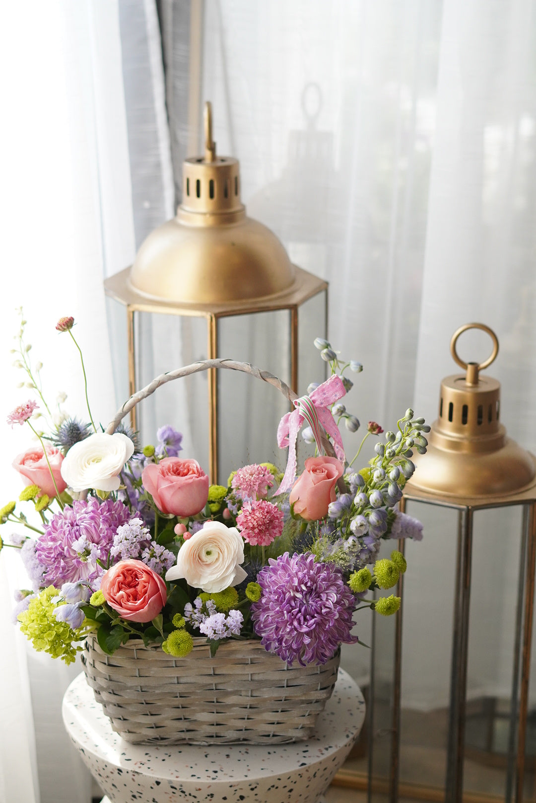 이 편곡은 장미의 부드러운 따뜻함, 라넌큘러스의 매력적인 복잡함, 무스카리의 섬세한 우아함이 특징인 꽃의 우아함을 시적으로 표현한 교향곡입니다.