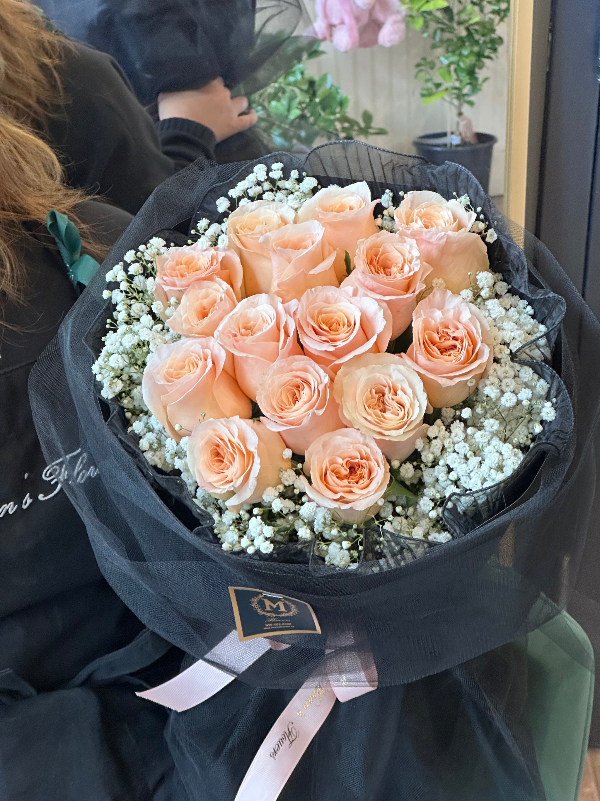 감탄과 사랑을 표현하기에 완벽한 이 부케는 조용한 애정과 희귀한 순간에서 발견되는 독특한 아름다움을 나타냅니다. 중요한 사람이든 소중한 친구이든 이 장미는 깊고 지속적인 관계를 부드럽게 상기시켜 줍니다.