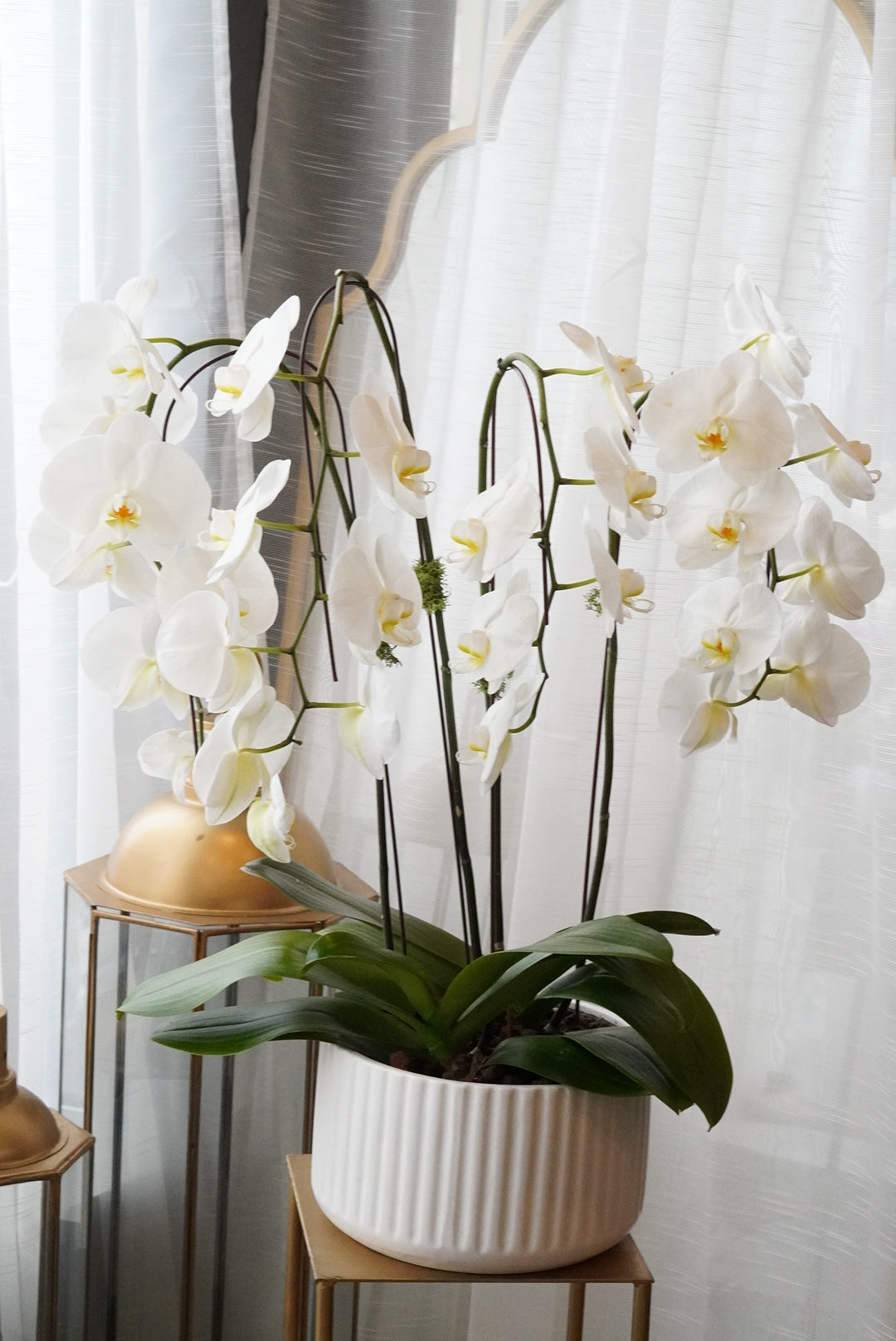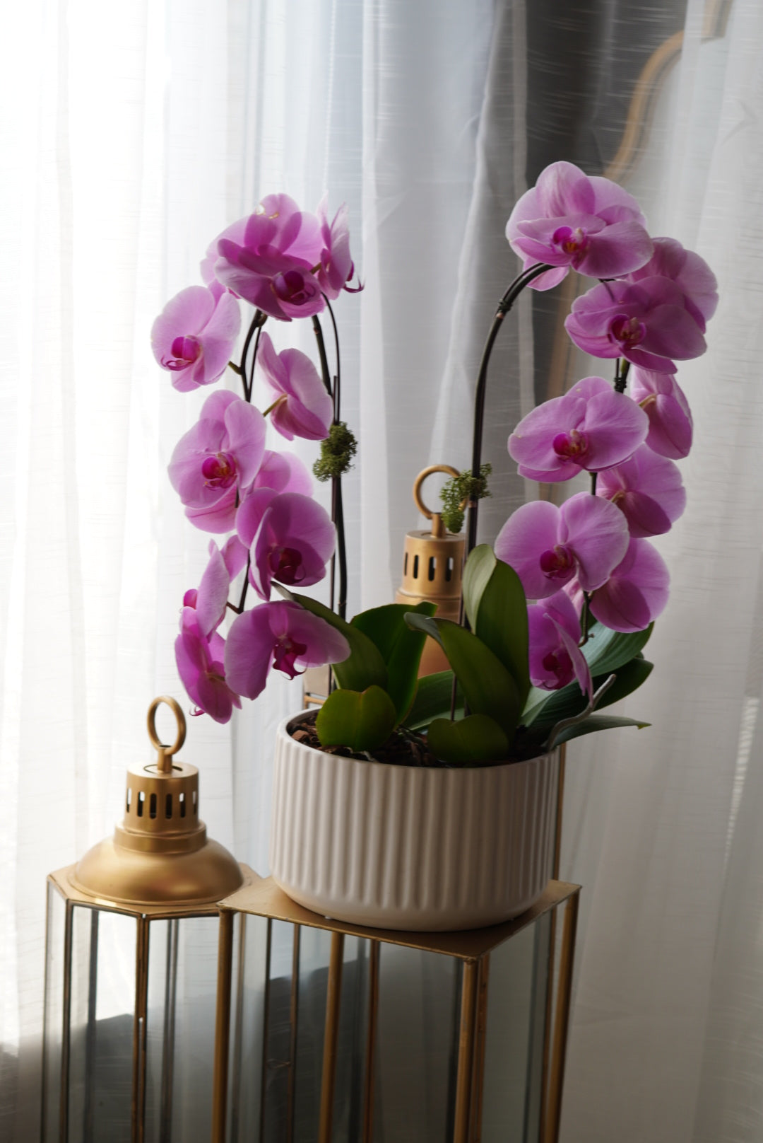 Elevate any space with our stunning Large Orchids, featuring graceful pink or white blooms arranged in an elegant bowl. These sophisticated plants make an exceptional gift for orchid enthusiasts and home décor lovers alike. Known for their longevity and minimal care requirements, orchids bring timeless beauty to living rooms, offices, or entryways. The carefully selected color palette complements virtually any interior style, while the generous size ensures an impressive visual impact. Perfect for those seeking a refined, long-lasting floral gift that transcends seasonal trends.